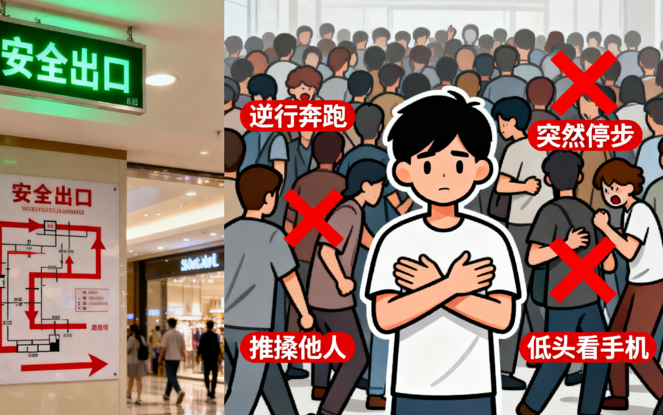 三、人员密集区避险:先找“安全出口”,再防“拥挤伤害”