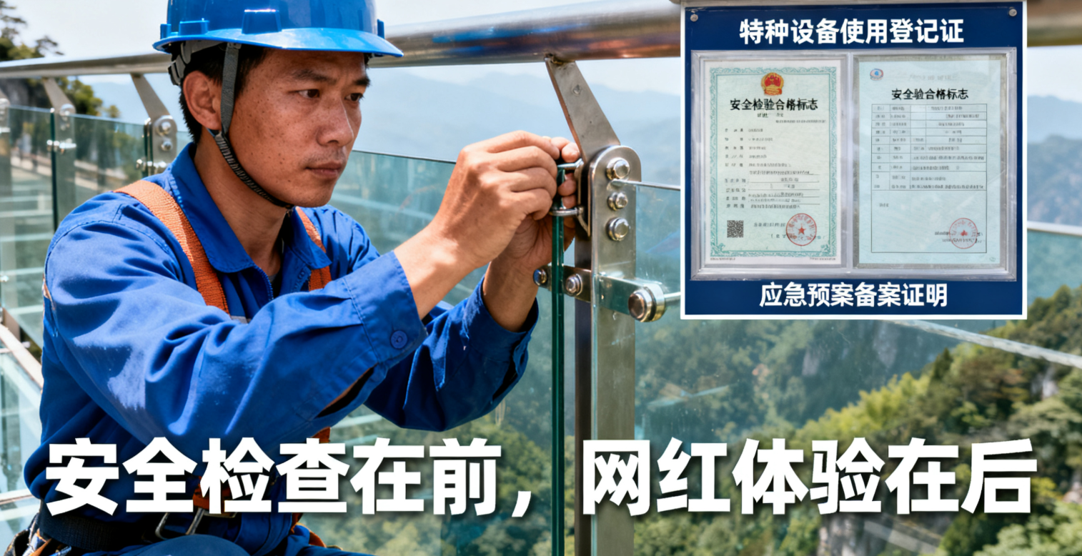 - 查“三证”:景区营业执照、特种设备使用登记证、操作人员资格证,缺一不可;