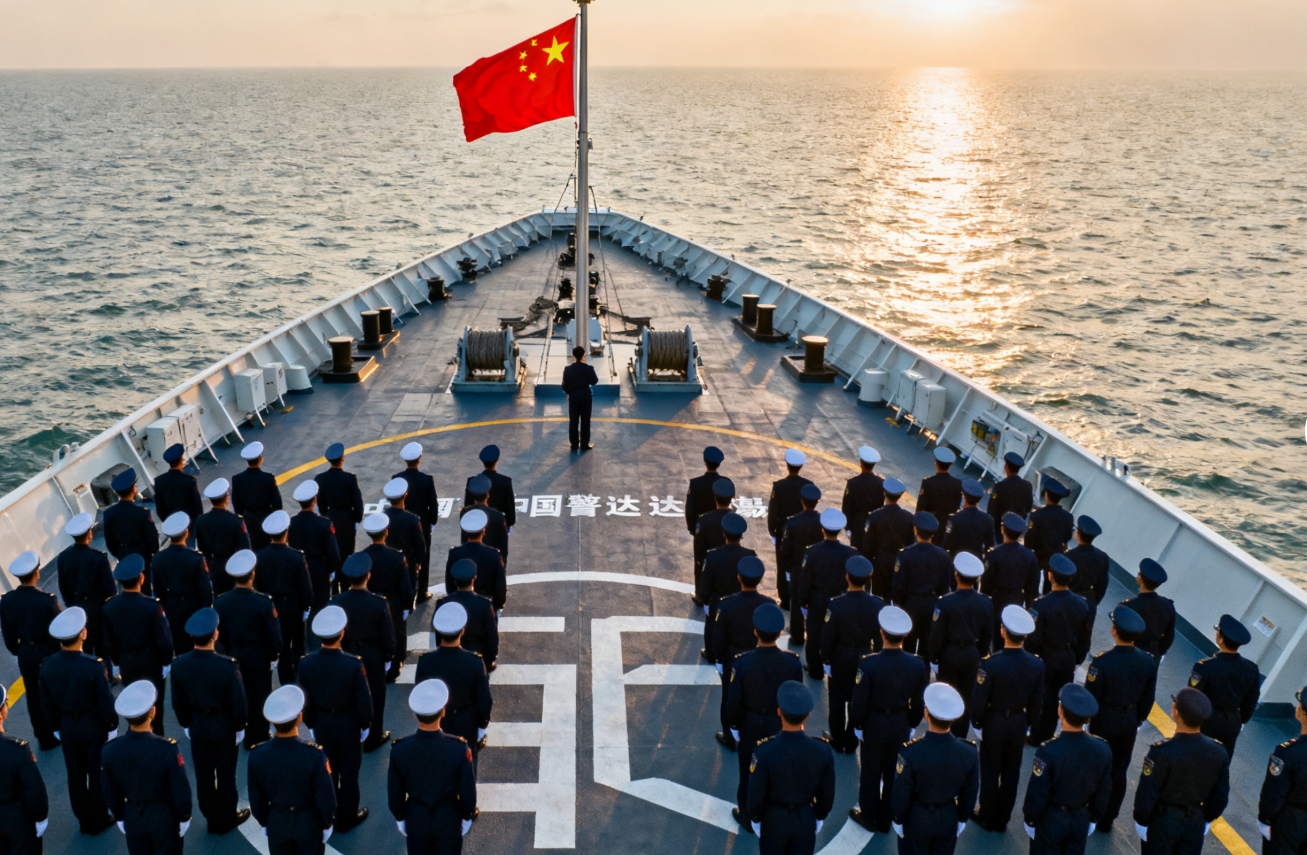 2025年10月1日,正在中国南海黄岩岛国家级自然保护区海域执行任务的中国海警达濠舰执法员,在守护海疆的最前线举行了一场庄重肃穆的升国旗仪式,以忠诚担当与坚守奉献,向伟大祖国送出深情献礼。