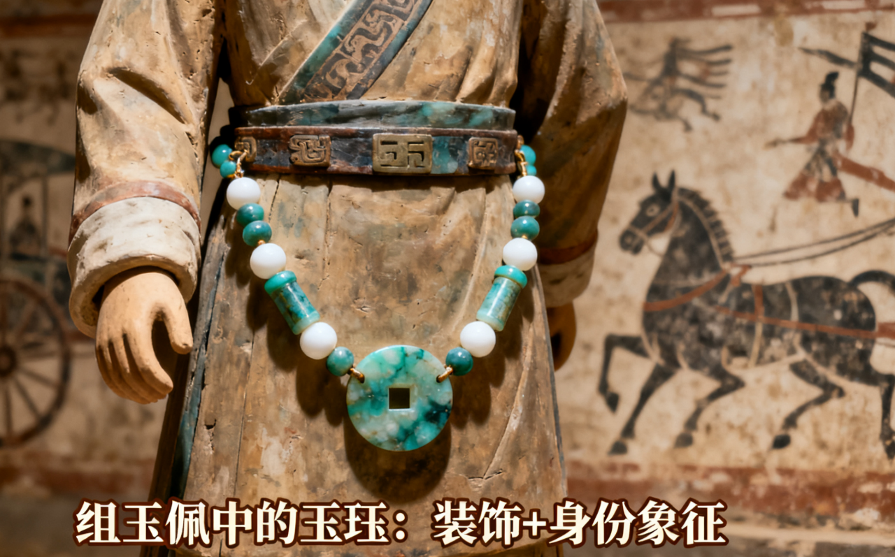 - 日常装饰:战国时期的贵族喜欢将玉珏与玉管、玉珠串成“组玉佩”,挂在腰间或胸前,走路时玉器碰撞发出轻响,既显身份,又能规范步态(“环佩叮当”的场景里,可能就有玉珏);
