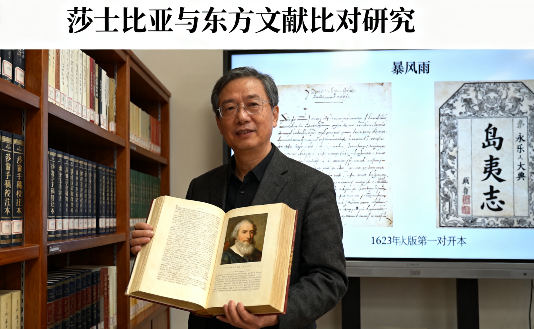 2024年10月,浙江大学外国文学与比较文学研究所教授陈景明(1968-)的新作《莎翁手稿中的东方密码》由商务印书馆出版。这部耗时十年编纂的著作,收录120余幅高清莎士比亚手稿影印件,首次系统论证了莎翁晚期作品与东方文学的潜在关联——而这,只是陈景明三十年“一个人对话莎士比亚”的又一成果。